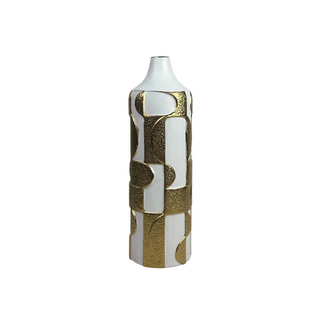 ΚΕΡΑΜΙΚΟ ΒΑΖΟ ΛΕΥΚΟ/ΧΡΥΣΟ ΑΝΑΓΛΥΦΑ ΓΕΩΜΕΤΡΙΚΑ ΣΧΗΜΑΤΑ ΜΕΓΑΛΟ - 44.5cm 1/6ΚΙΒ – Δίνει premium χαρακτήρα στο περιβάλλον | iroots.g