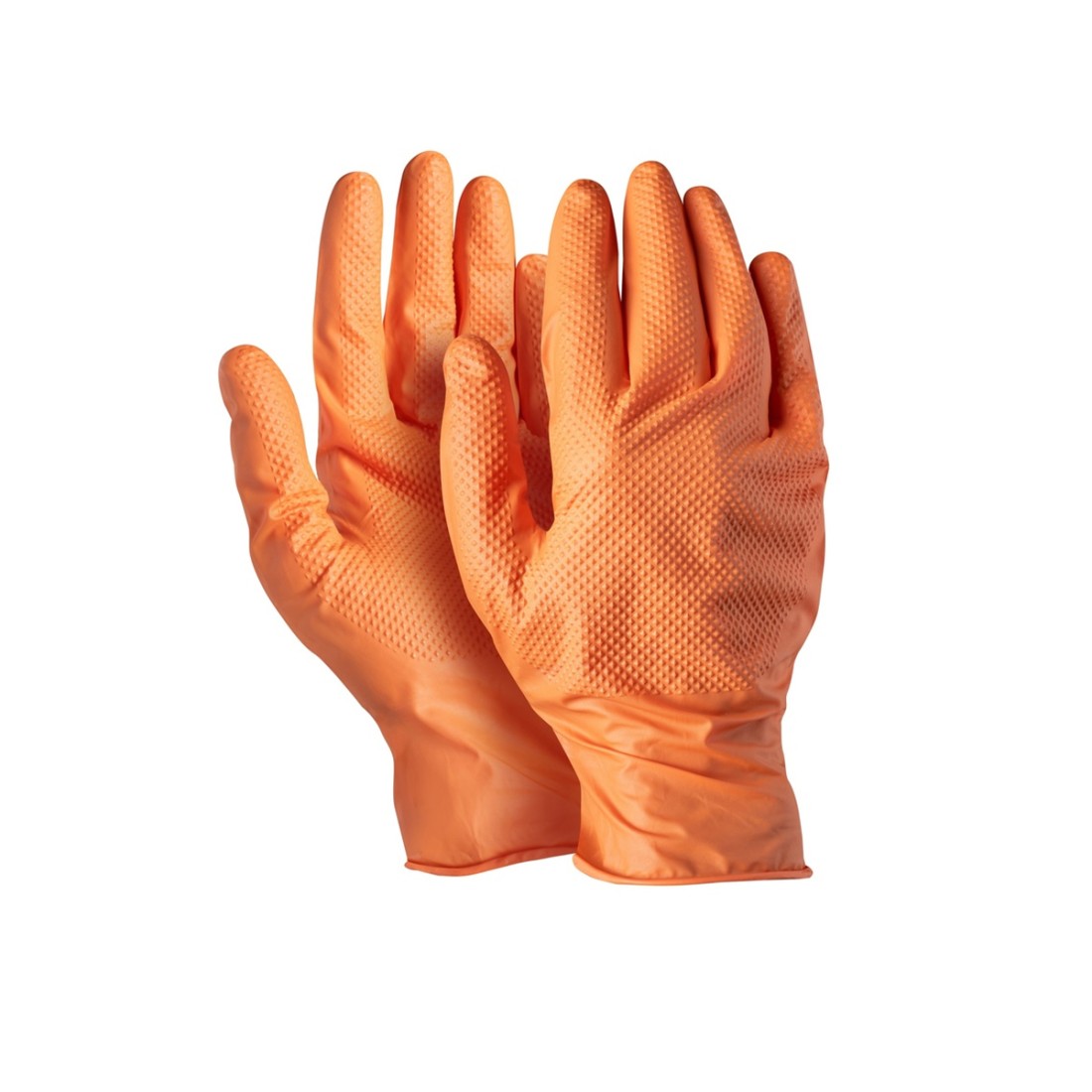 Γάντια μιας χρήσης nitrile πορτοκαλί συνεργείου πάχος 0.18mm Dext 9/L (κουτί των 50τεμ.) D3679 – Δίνει premium χαρακτήρα στο περ