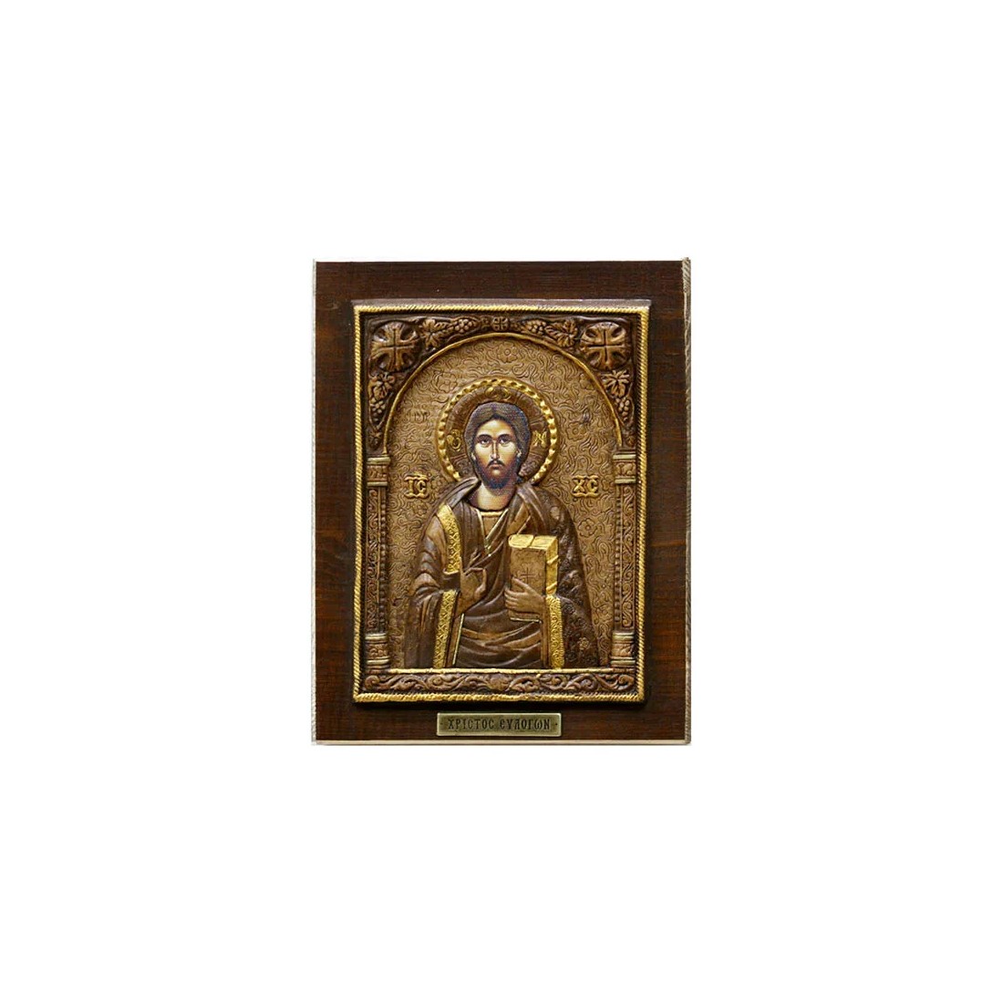 ΞΥΛΙΝΗ ΑΝΑΓΛΥΦΗ ΕΙΚΟΝΑ ΧΡΙΣΤΟΣ ΕΥΛΟΓΩΝ - 18x23.2cm