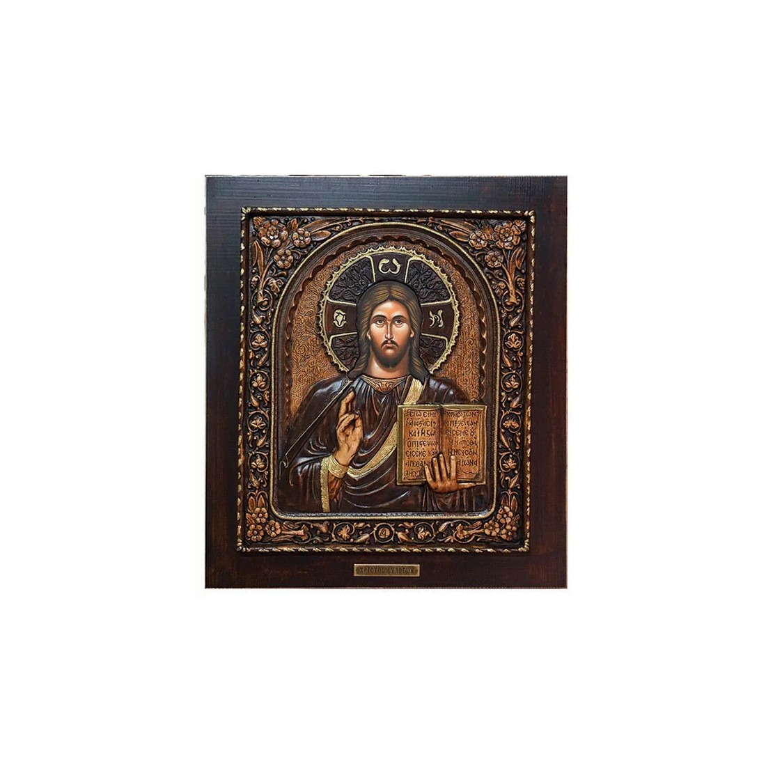 ΞΥΛΙΝΗ ΑΝΑΓΛΥΦΗ ΕΙΚΟΝΑ ΧΡΙΣΤΟΣ ΕΥΛΟΓΩΝ (ΜΕ ΠΛΑΙΣΙΟ) - 32x36.5cm