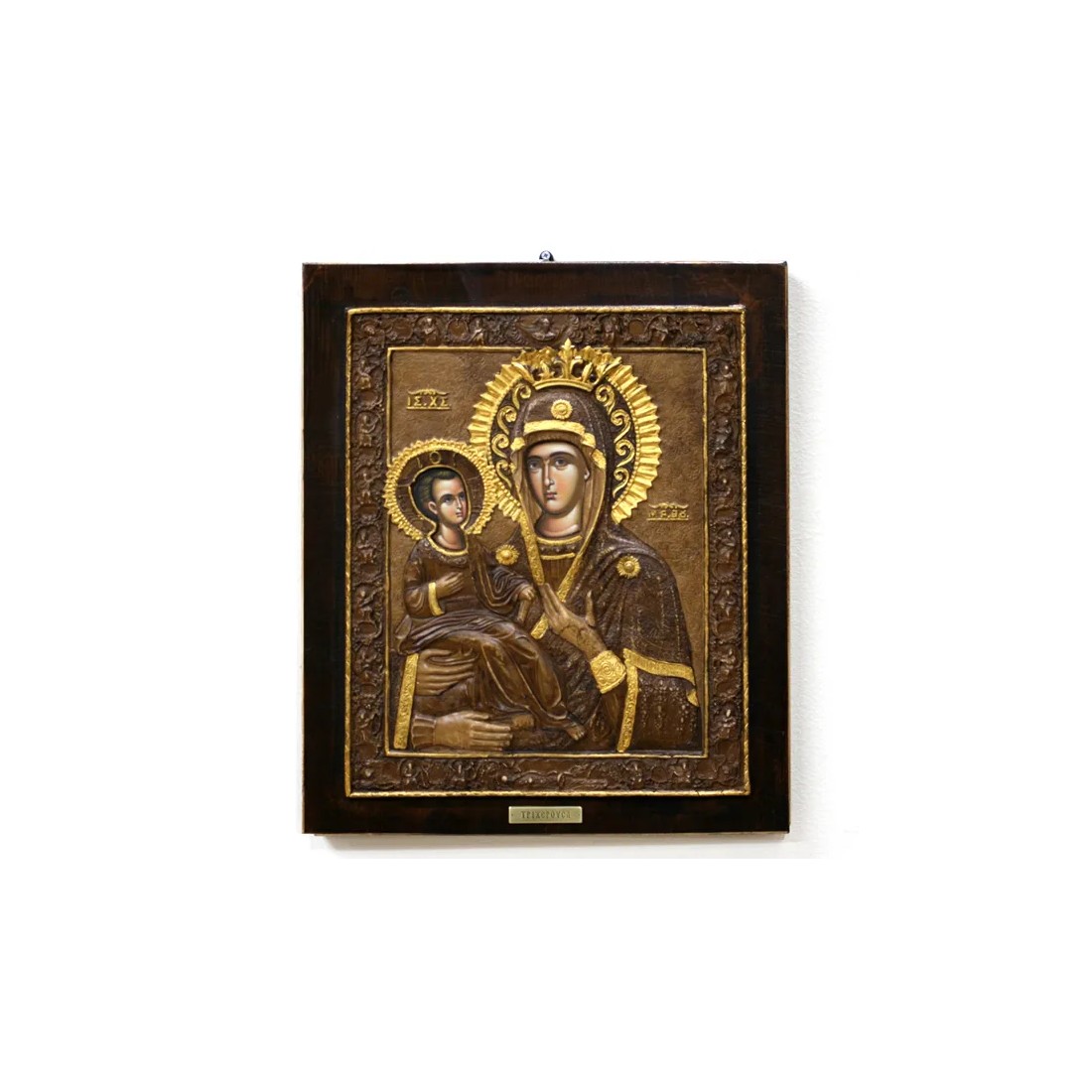 ΞΥΛΙΝΗ ΑΝΑΓΛΥΦΗ ΕΙΚΟΝΑ ΠΑΝΑΓΙΑ ΤΡΙΧΕΡΟΥΣΑ (ME ΧΡΥΣΟ) - 33x39cm – Δίνει premium χαρακτήρα στο περιβάλλον | iroots.gr