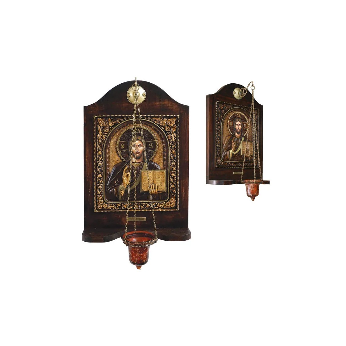 ΕΙΚΟΝΟΣΤΑΣΙ ΑΝΑΓΛΥΦΗ ΕΙΚΟΝΑ ΜΕ ΑΛΥΣΙΔΑ ΚΑΙ ΚΡΕΜΑΣΤΟ ΓΥΑΛΙΝΟ ΚΑΝΤΗΛΑΚΙ - ΘΕΜΑ: ΧΡΙΣΤΟΣ ΕΥΛΟΓΩΝ - ΥΛΙΚΟ: ΞΥΛΟ, ΜΕΤΑΛΛΟ, ΓΥΑΛΙ - ΔΙΑΣΤΑΣΕΙΣ: 33.5x49cm - ΚΙΒΩΤΙΟ: 1/1 ICONOSTASIS RELIEF ICON WITH CHΑΙΝ AND HANGING GLASS FOR CANDLE - THEME: CHRIST OF BLESSINGS - MATERIAL: WOOD, METAL, GLASS - DIMENSIONS: 33.5x49cm - BOX: 1/1