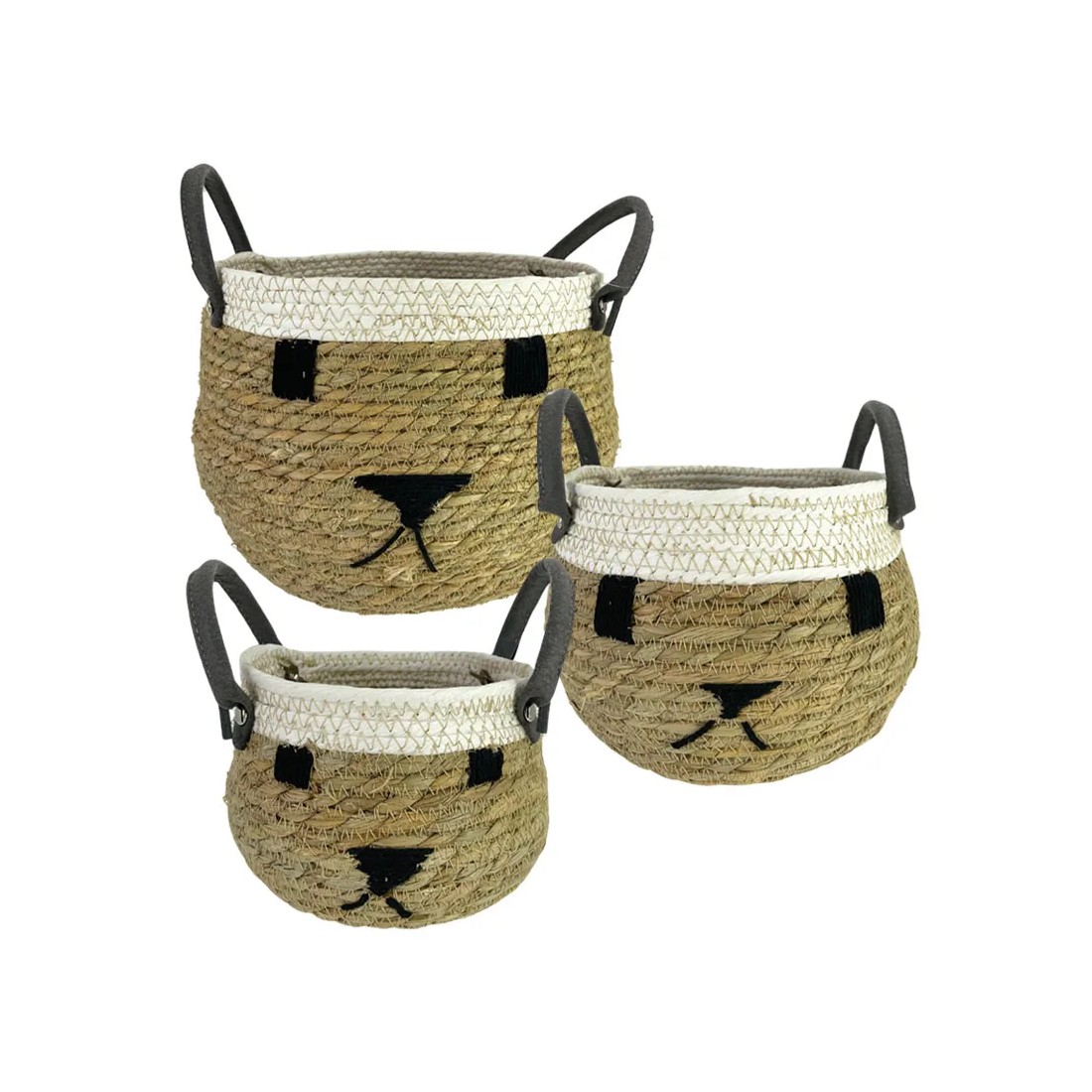 ΚΑΛΑΘΟΥΝΑ ΨΑΘΑ ΣΕΤ/3 ΖΩΑΚΙ - ΧΡΩΜΑ: ΦΥΣΙΚΟ / ΛΕΥΚΟ / ΜΑΥΡΟ - ΥΛΙΚΟ: ΨΑΘΑ, ΥΦΑΣΜΑ, ΝΗΜΑΤΑ, ΤΕΧΝΟΔΕΡΜΑ - ΔΙΑΣΤΑΣΕΙΣ: L:Φ25x19/24, M:Φ20x15/20, S:Φ17x11/15cm - ΚΙΒ: 4 WICKER BASKETS SET/3 PET - COLOR: ΝNATURAL / WHITE / BLACK - MATERIAL: WICKER, FABRIC, THREADS, ARTIFICIAL LEADER - DIMENSIONS: L:Φ25x19/24, M:Φ20x15/20, S:Φ17x11/15cm - ΒΟΧ: 4