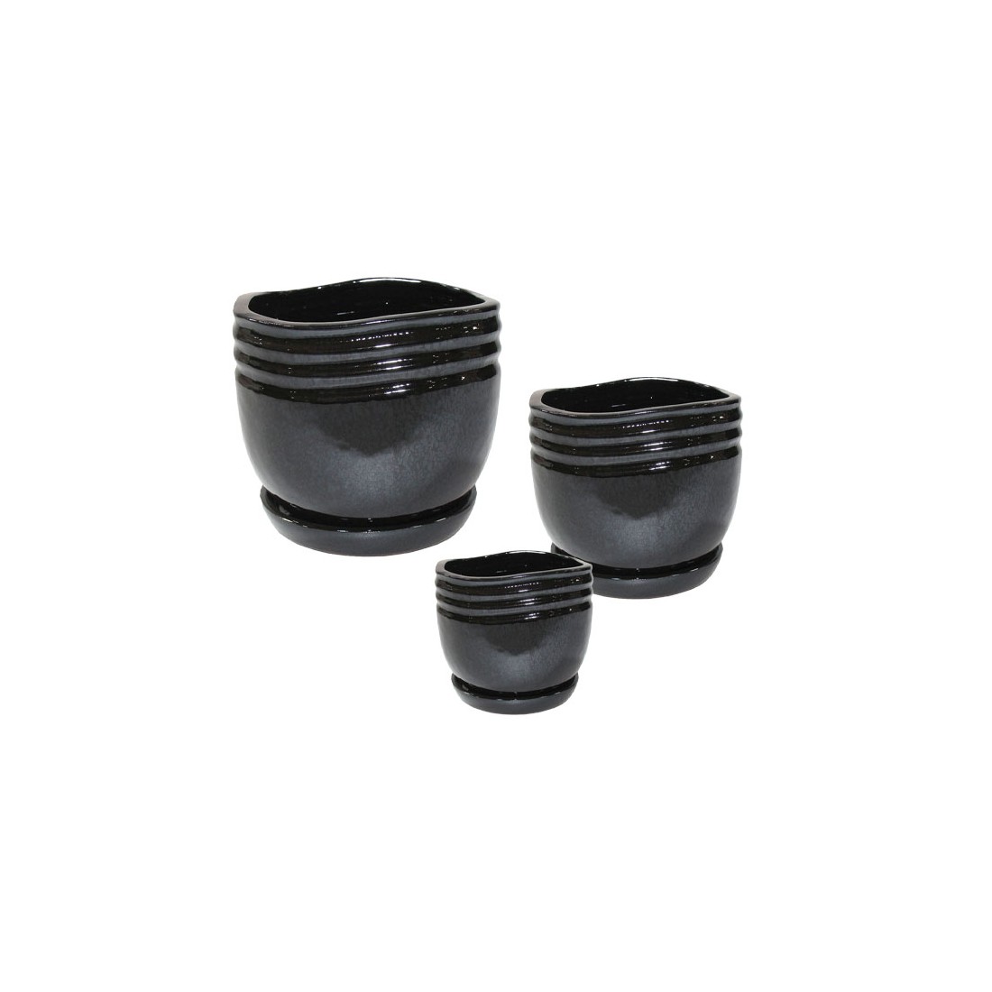 ΣΕΤ/3 ΚΑΣΠΩ ΠΗΛΙΝΑ ΜΑΥΡΑ ΣΤΡΟΓΓΥΛΑ ΜΕ ΠΙΑΤΑΚΙΑ - S:Φ14x14, M:Φ19.5x18.5, L:Φ24x23.5cm 2/ΚΙΒ