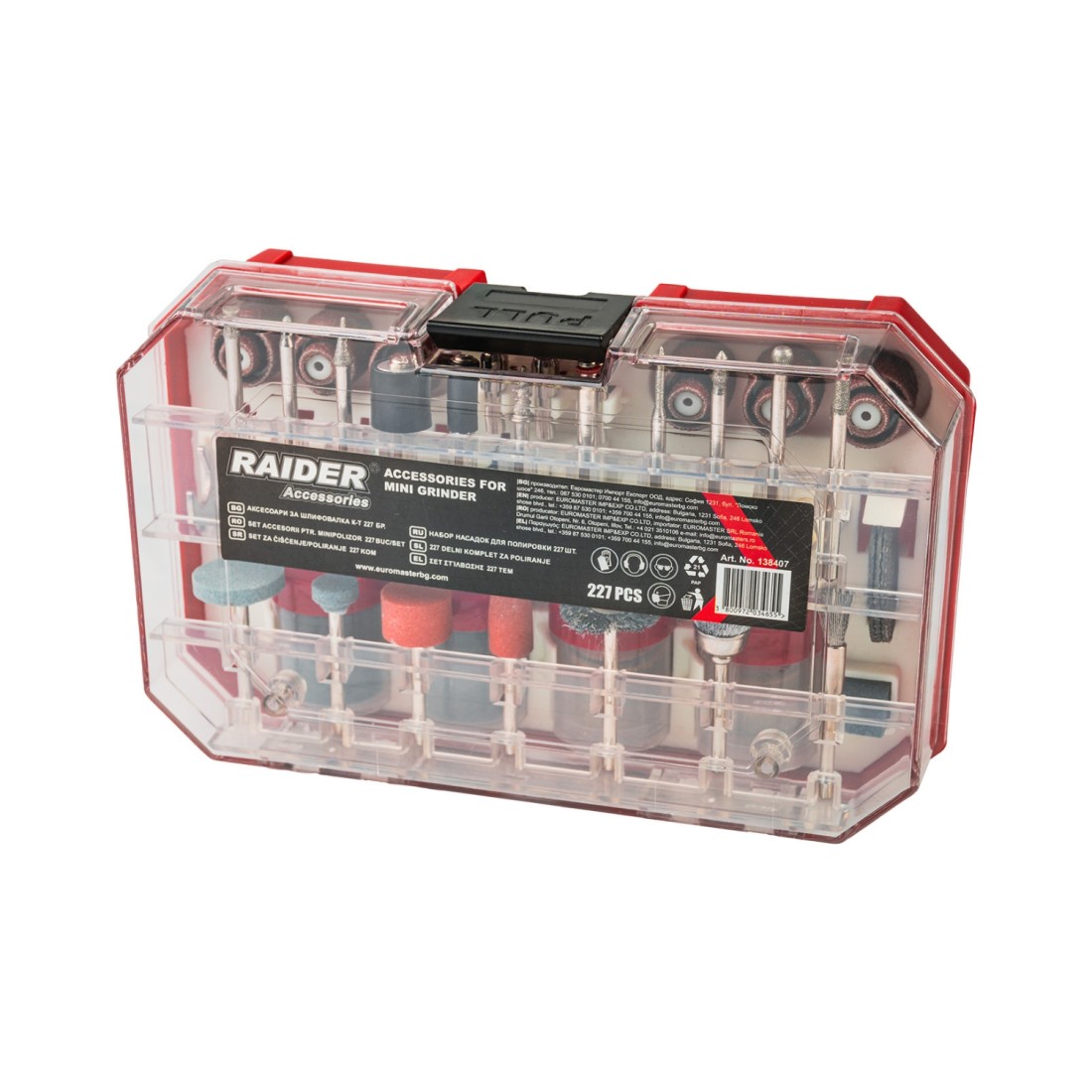 Το σετ εξαρτημάτων RAIDER 138407 αποτελεί μια ολοκληρωμένη και ευέλικτη λύση για περιστροφικά πολυεργαλεία, προσφέροντας 227 επιλεγμένα εξαρτήματα για ένα ευρύ φάσμα εφαρμογών. Είναι κατάλληλο για εργασίες κοπής, λείανσης, χαρακτικής, στίλβωσης και καθαρισμού, καλύπτοντας πλήρως τις ανάγκες τόσο επαγγελματιών όσο και ερασιτεχνών. Τα εξαρτήματα είναι συμβατά με τα περισσότερα μοντέλα πολυλειτουργικών εργαλείων της αγοράς και συνοδεύονται από μία πρακτική και ανθεκτική κασετίνα που επιτρέπει την ασφαλή αποθήκευση και εύκολη μεταφορά.