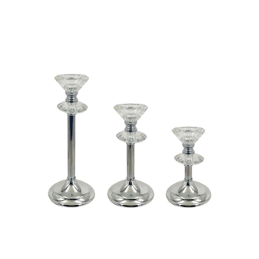 ΚΗΡΟΠΗΓΕΙΑ ΜΕΤΑΛΛΙΚA ΑΣΗΜΙ/ΛΕΥΚΟ ΣΕΤ/3 ΚΛΑΣΙΚΟ ΡΑΒΔΟΣ ΜΕ ΚΡΥΣΤΑΛΛΑ-S:Φ10x17,Μ:Φ10x21,L:Φ10x27cm 12/ΚΙΒ