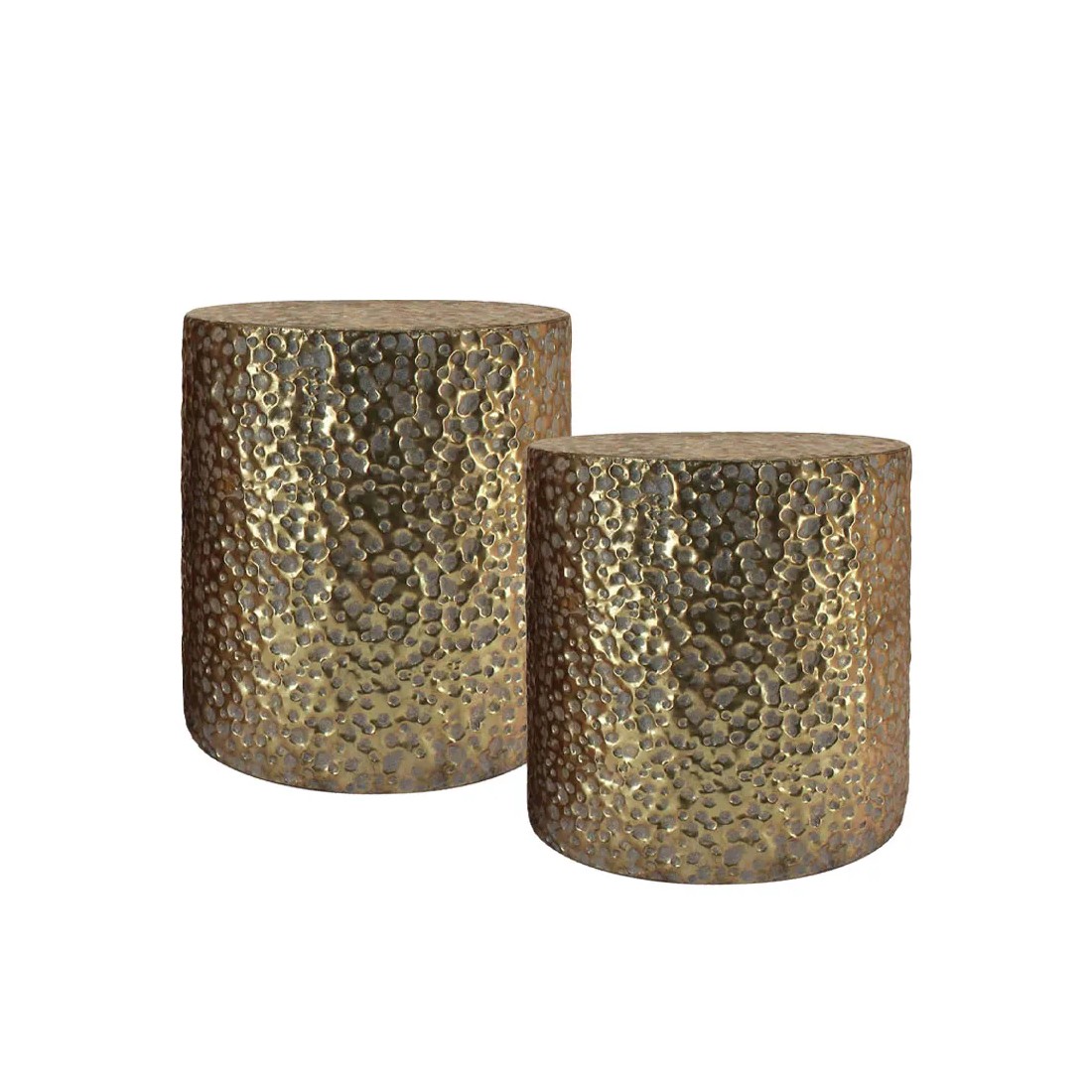 ΜΕΤΑΛΛΙΚA ΤΡΑΠΕΖAKIA ΣΕΤ/2 ΣΤΡΟΓΓΥΛΑ ΧΡΥΣΟ ΣΦΥΡΙΛΑΤΟ - L:Φ51.5x55.5, S:Φ43.5x50cm 1/ΚΙΒ