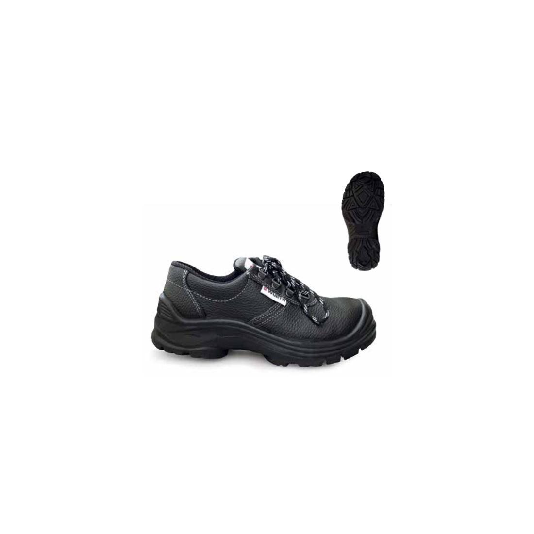 Δερμάτινο και διαπνέον παπούτσι ασφαλείας με εξαιρετική σταθερότητα χάρη στην αντιολισθητική σόλα PU με πολλαπλή απορρόφηση κραδασμών στην περιοχή της φτέρνας.