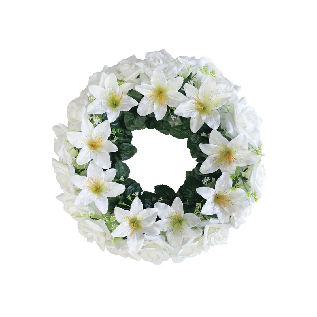 ΣΤΕΦΑΝΙ ΛΟΥΛΟΥΔΙΩΝ ΣΑΜΠΑΝΙ/ΛΕΥΚΟ ΤΡΙΑΝΤΑΦΥΛΛΟ/ΚΡΙΝΟΣ - Φ46cm 16/ΚΙΒ